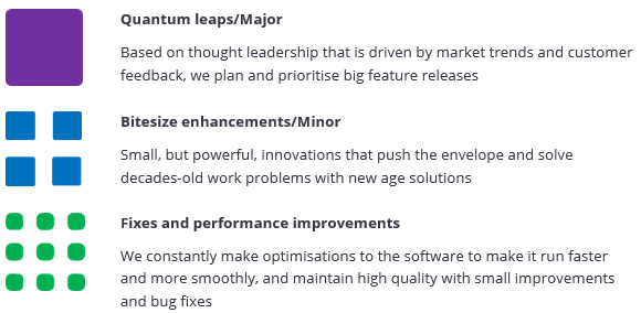 In line with our Product Priority roadmaps, features will also be tagged based on their impact, using the following icons.
