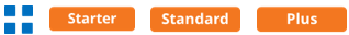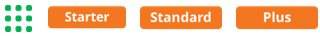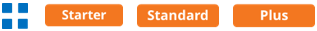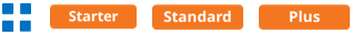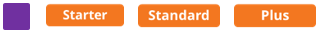 Features are categorised according to subscription tiers: Starter, Standard, Pro/Graduation. Higher tiers encompass the features of the preceding tiers.