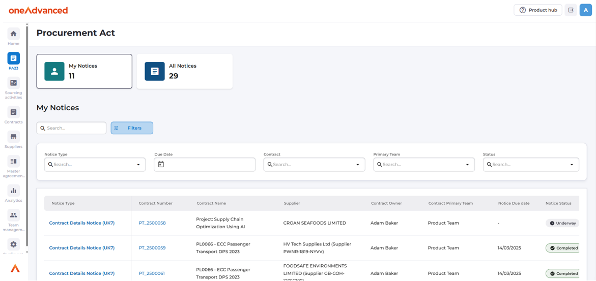 More detailed information on the Procurement Act is available in the Product Hub, accessible via the button in the top right hand of every screen within Source to Contract or directly by clicking here.