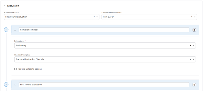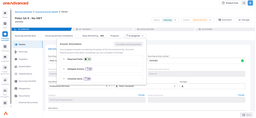 When configuring sourcing activity process templates, additional phases can now be added to allow for greater flexibility in how process templates can represent real world processes and projects. As each phase has a key action associated with it, users can also identify in which phase the key action should commence, and where relevant in which phase it can be completed.