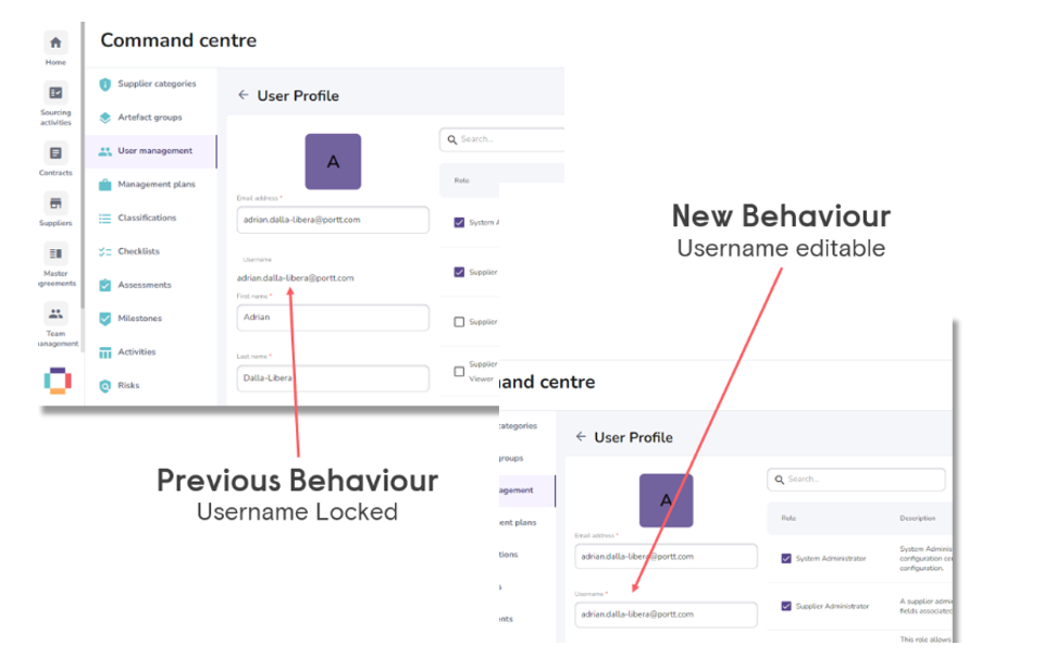 This release changes the ‘Username’ field for a user account to be editable by System administrator's via ‘User Management’ in Command Centre.