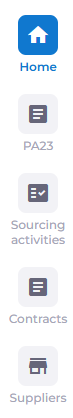 Once the Procurement Act features have been toggled on, the Procurement Act Dashboard (PA23) module will be visible in the Navigation Panel: