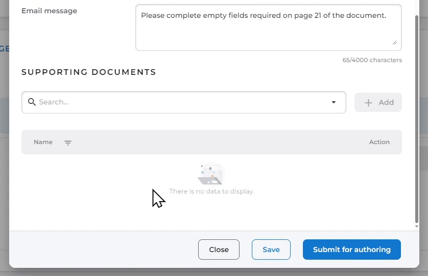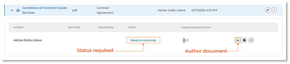 To initiate the authoring process for a document, you need to click the ‘Submit for authoring’ button (as mentioned above). Once this is done, the document’s status will change to ‘Ready for authoring’.