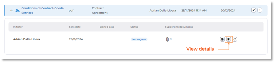 The progress of the signing process can be reviewed by clicking the ‘view details’ button.