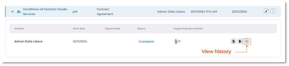 A detailed log of all events can be accessed for auditing or troubleshooting purposes by clicking the ‘View history’ button at any time during and after the signing process is completed.