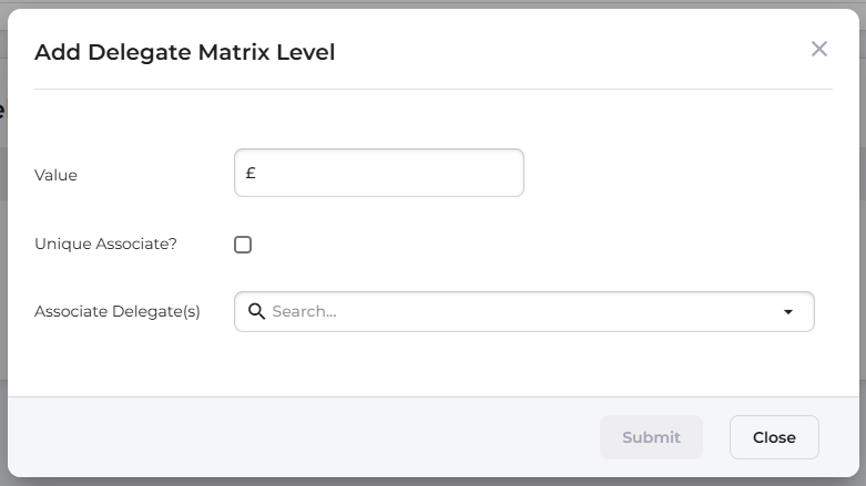 - This is the upper limit of the ex-tax value for which the associated role can approve requests. The lower bound is set by the previous level's value (The lower bound will be set at 0 for the first level). As the levels go up the value has to increase.