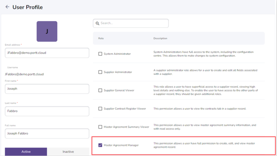 This release introduces a 'Master Agreement Manager' role, which is assignable via User management within the Command Centre by system administrators. By default, users other than system administrators will ONLY see the 'Overview' details of Master Agreements'. Enabling this new role for a user allows them to view all details on master agreements as well as add, edit and remove Master Agreements.