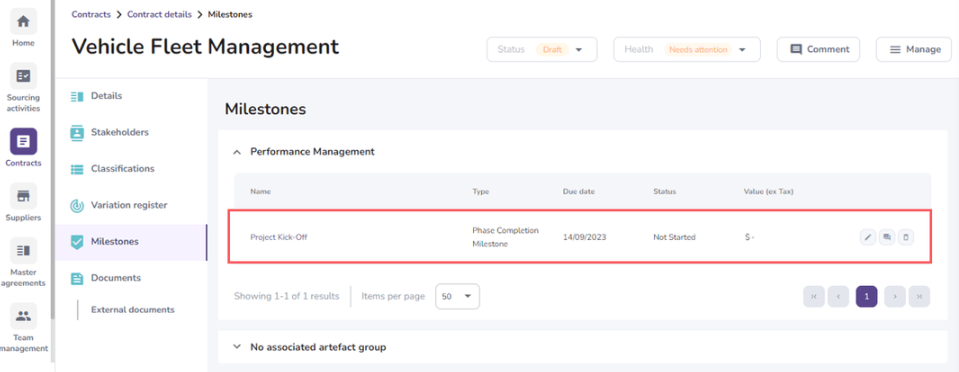 This release adds support for Milestones in Contracts, providing the ability to track progress, deadlines and evaluate the overall performance of contracts. Contract milestones can be generated by using predefined templates (curated by system administrators) or by creating a custom milestone from a blank canvas.