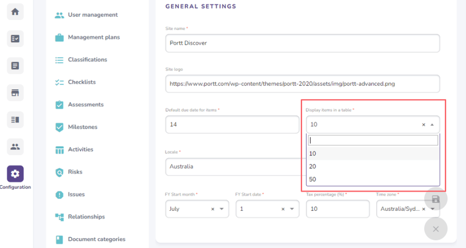 Previously when viewing dashboards in various areas of the system, the default items to display were fixed at 10, and the user could increase to 20 or 50 per session. A setting has now been added to the 'Site Settings' within the Command Centre that will allow administrators to decide what the default items to display for users will be.