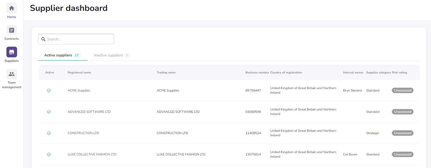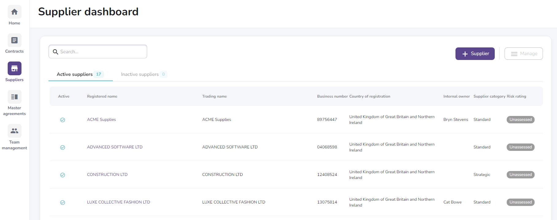If a user is assigned this role standalone, the menu and supplier screen will be presented as follows: