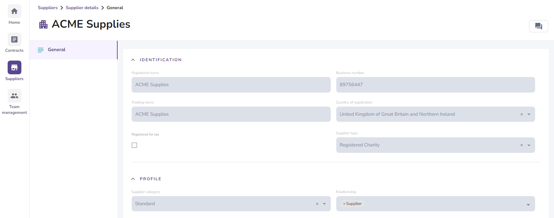 Supplier General Viewer | This permission allows a user to ONLY view high level details of the supplier record that are displayed within the ‘General' tab of the supplier record. |