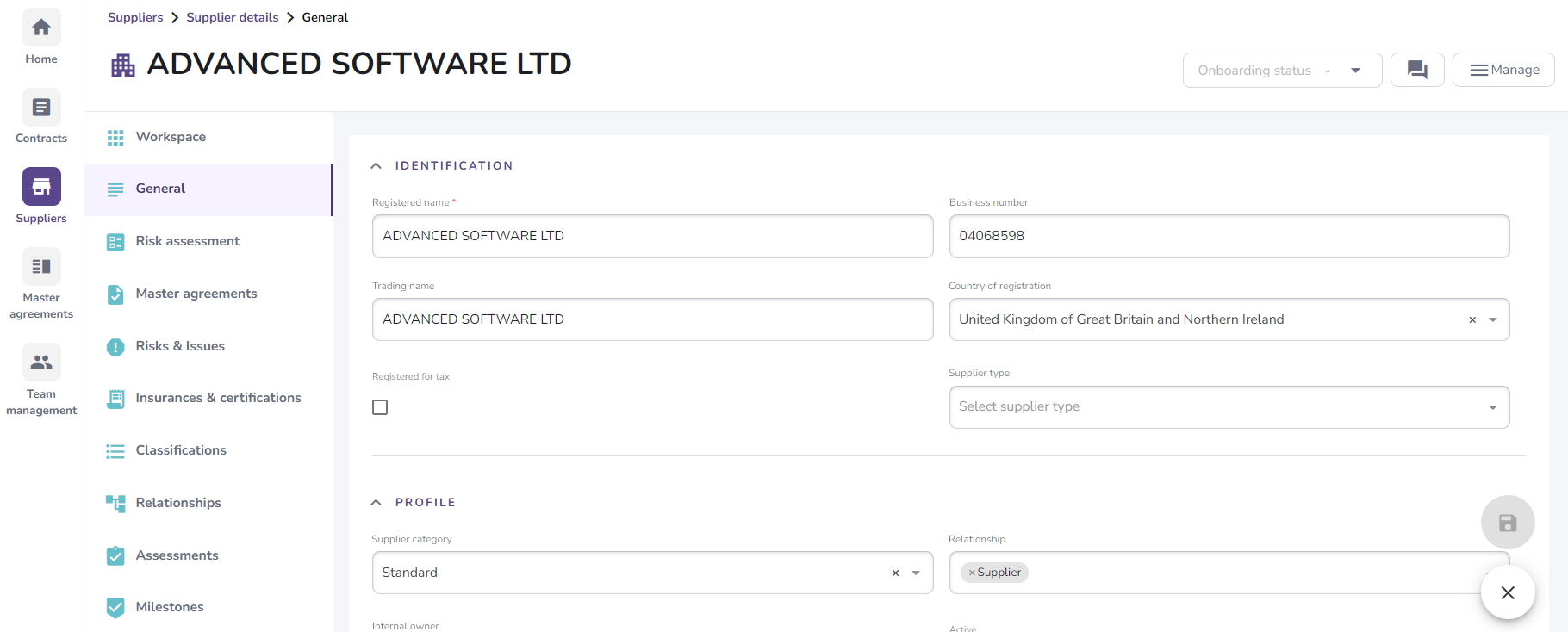 Users are not able to create new suppliers or edit/manage suppliers. The General tab within the record is available only.