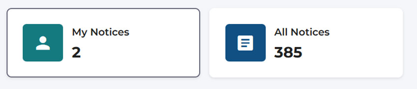 The My Notices icon will display a count and a list all the notices for which the user is responsible.