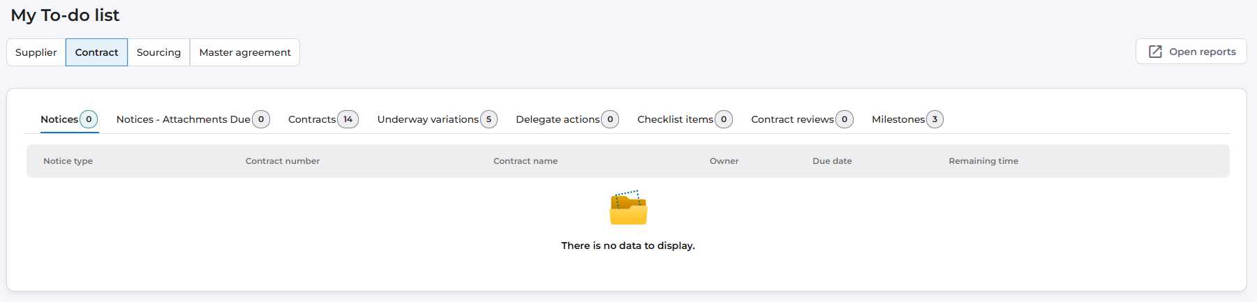 The Contract tab in the To-Do list on your Home page now includes a Notices and Notice Attachments section making it easier to track outstanding actions related to publishing notices to individual users.