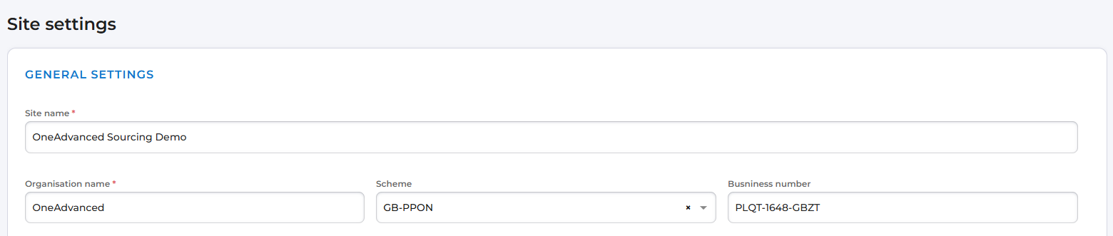 Within the Site Settings section in the Configuration module, you can enter details about your organisation to aid in setting the correct notice/attachment requirements for your contracts in the system.