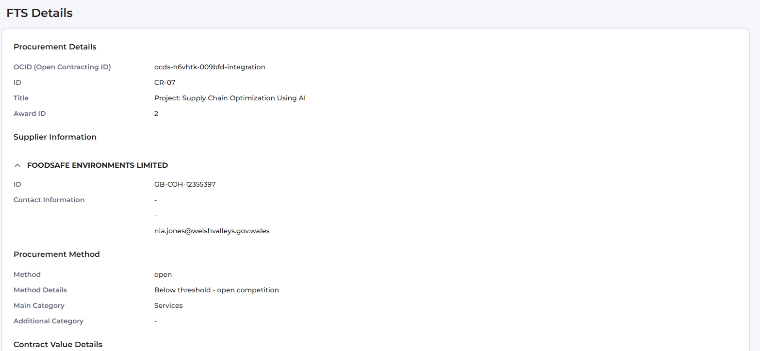 The Details tab is separated into different areas to give an overview of the contract and the procurement that preceded it.