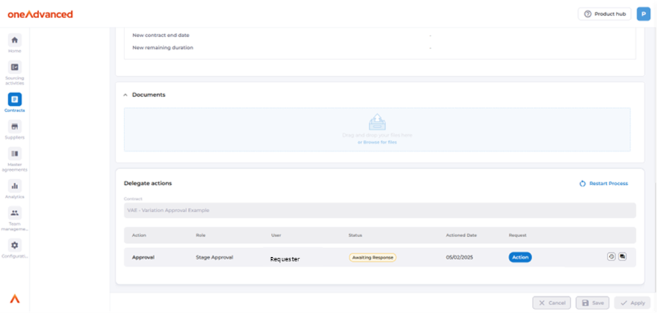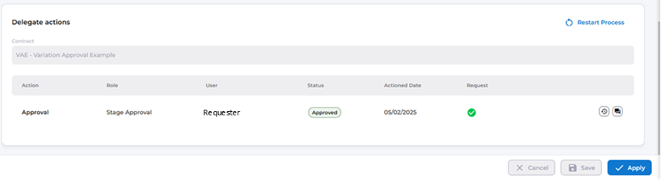 This will update the status on the variation and, if approved, will allow the requester to apply the variation to the contract.