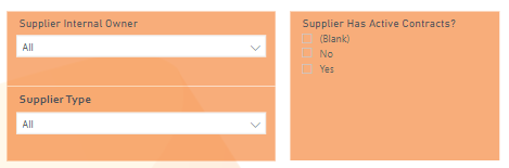 The typed option is primarily used to filter by a specific Supplier or Contract to provide the overview of the information shown on the dashboard for that supplier, instead of having to extract all that information by reading through the supplier record.