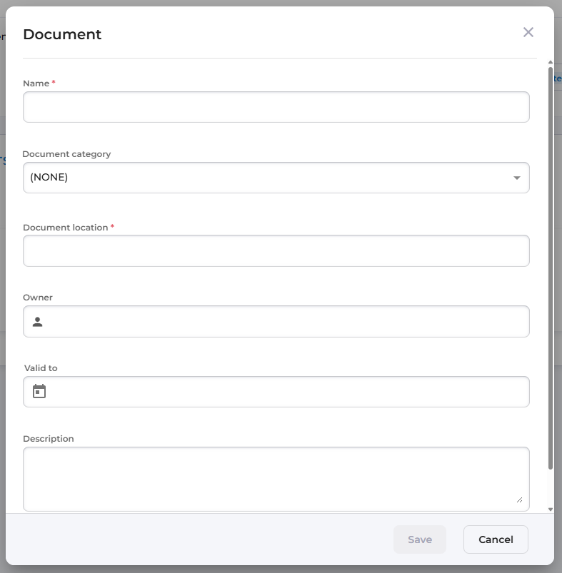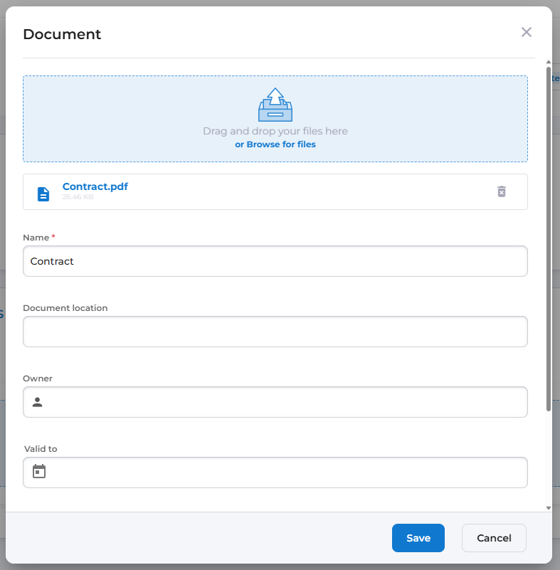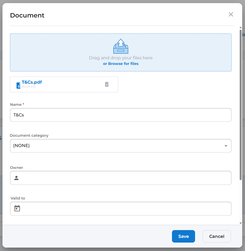 Assign an owner for the document, if applicable and enter a Valid to date if applicable.
