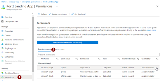 3. If the admin consent process completed successfully, you should see the following two applications listed (#1):