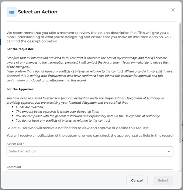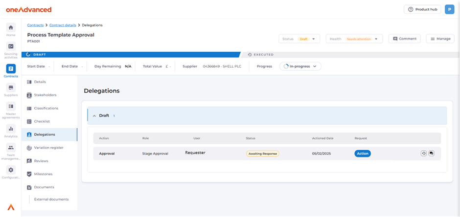 By clicking the link in the email, they will be taken to the Delegations screen of the contract so that they can action the request.