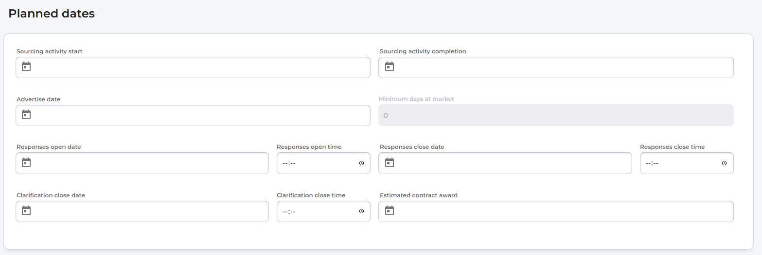 - Navigate to the Planned dates section within the Planning Tab and add your planned dates for the sourcing activity.