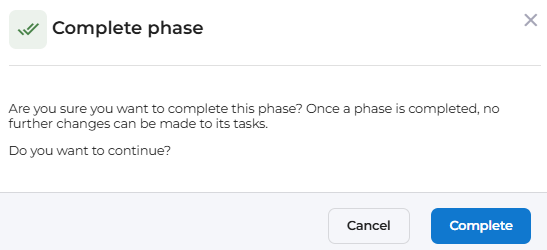 Once ready, select the Complete at market phase button to progress to the Evaluation phase.