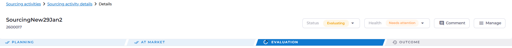 Once all suppliers have responded, or the close date for the activity has been reached, navigate to the Sourcing Checklist tab and complete any remaining actions listed there.