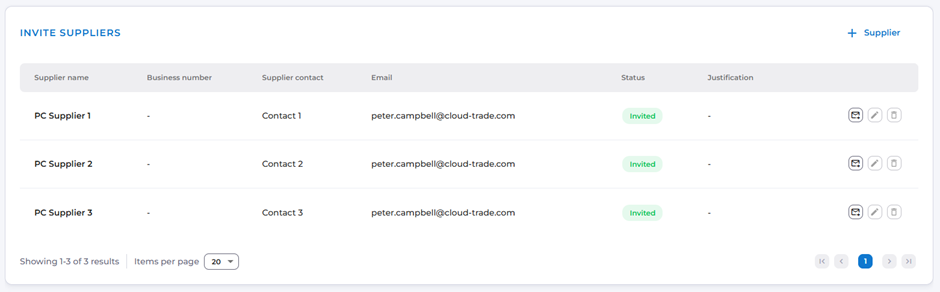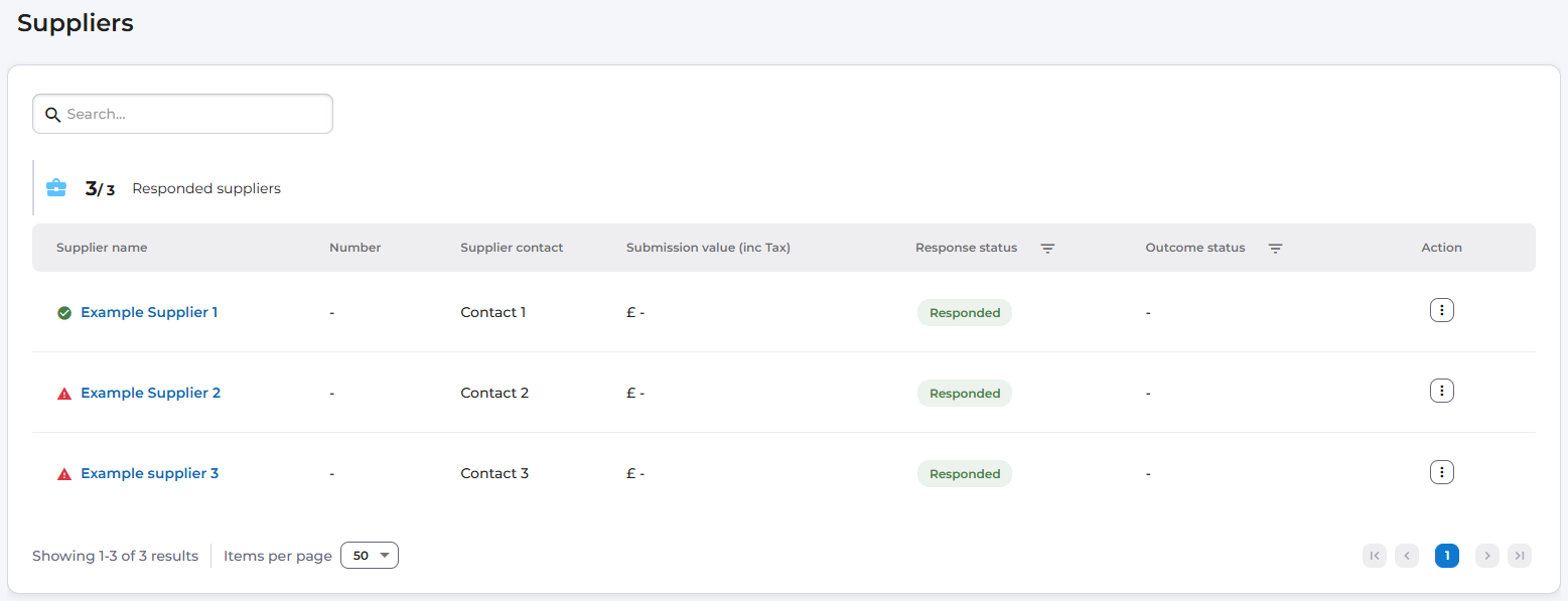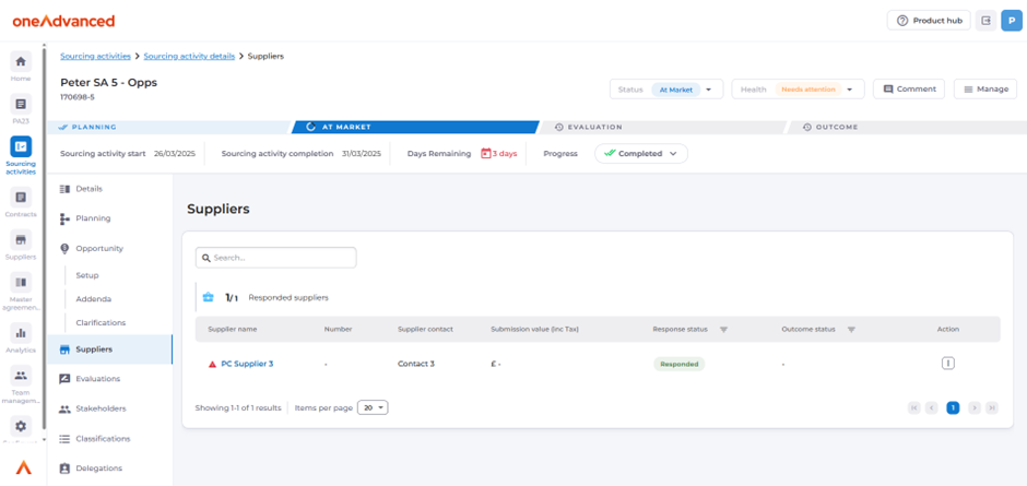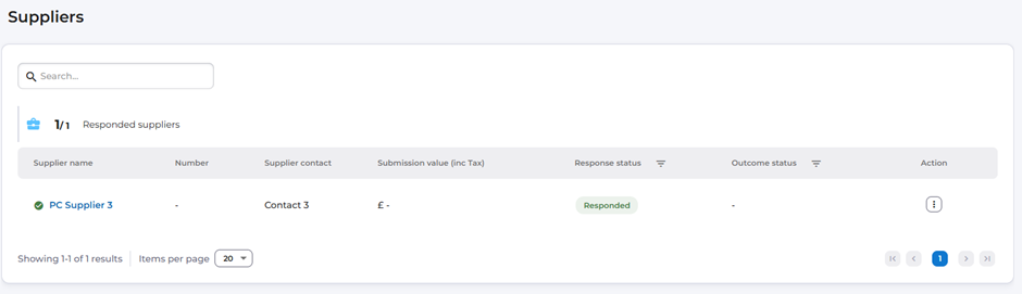 When a response is submitted, the suppliers tab automatically begins to be populated: