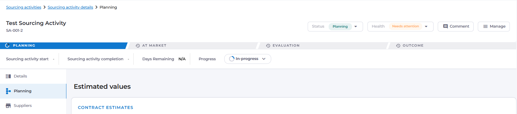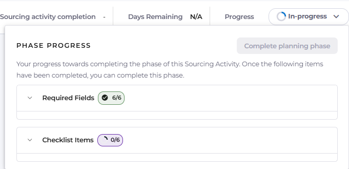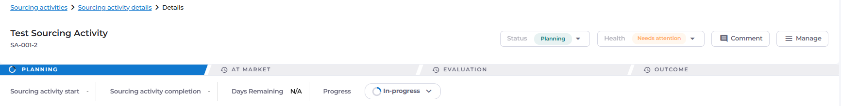 Once the Sourcing Activity has been created, it will automatically enter into the Planning phase of the process.