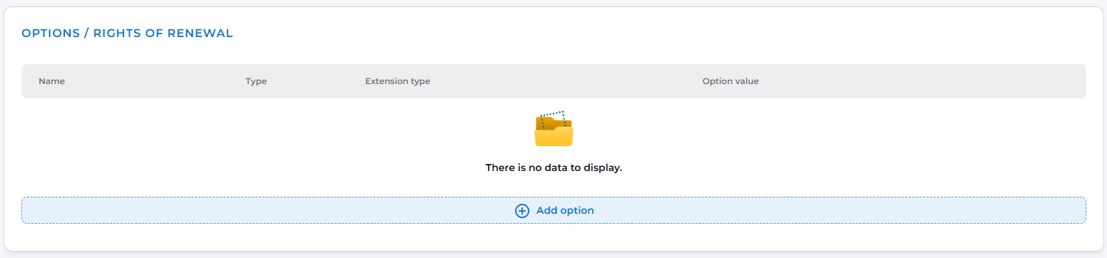 This section is available for adding any Options / Rights of Renewal that the contract should include.