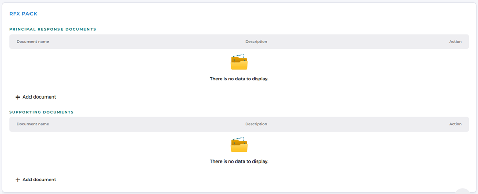 This combines with the RFx Pack created in the planning phase by allowing the user to upload documents as part of the pack: