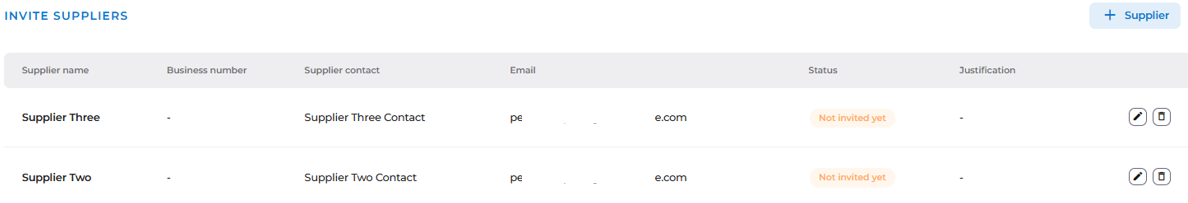 Scrolling to the bottom of the Opportunity Setup tab, users can invite suppliers by selecting the + Supplier button.