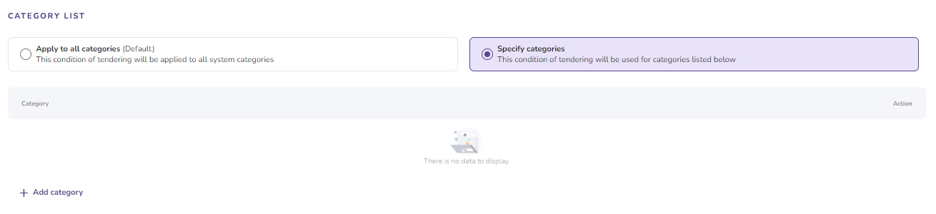 Allows system administrator to match conditions of tendering to categories, in the same manner as contract templates can be.
