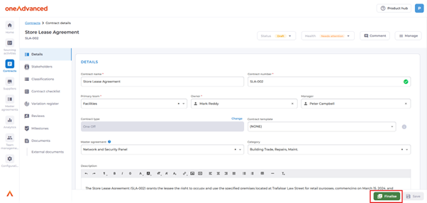 How do I 'Finalise' my contract?