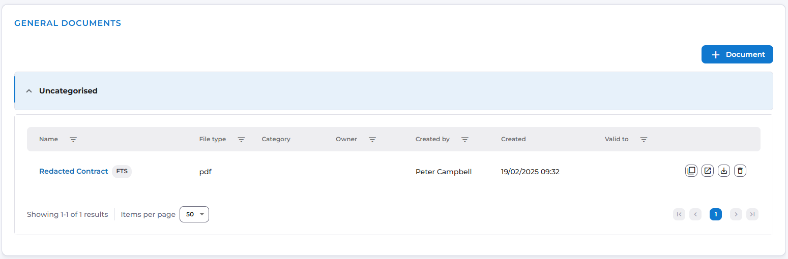 When the document has been published, this is then indicated within the record by an FTS indictor being made visible after the document name.