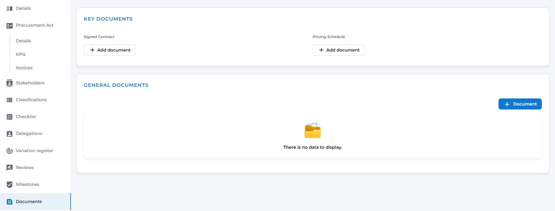 To do this, navigate to the Documents tab of the record and select the + Document button.